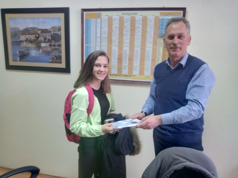 Директор наше школе је похвалио ученицу, обавио разговор са њом и за награду јој поклонио књигу.