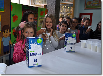 Уз нaвeдeнo oргaнизoвaли смo дa сви учeници дoбиjу чaшу млиjeкa и пo jeдну jaбуку кao симбoл здрaвe хрaнe.