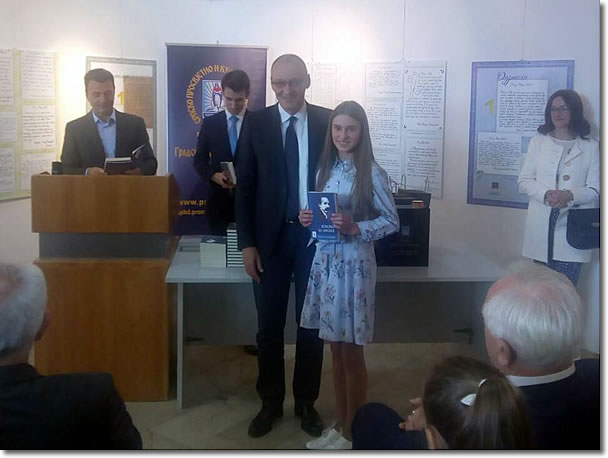 Ивана је награђена књигом са посветом СПКД „Просвјета“ Бања Лука.