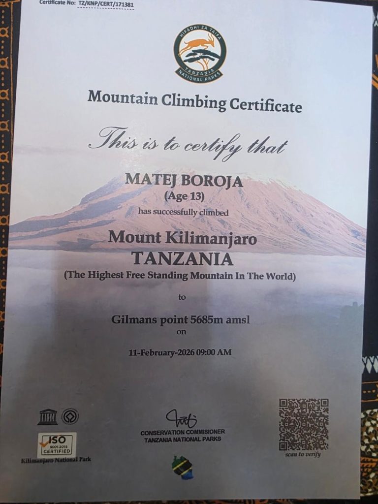 Наш ученик 7. разреда, Матеј Бороја, остварио је подвиг вриједан дубоког поштовања — попео се на један од врхова Килиманџара, Gilman’s Point, на 5685 метара надморске висине.