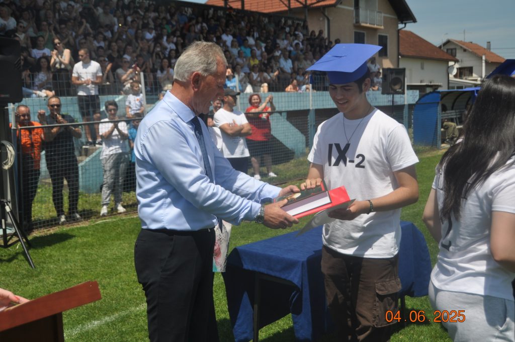 Дана, 4. јуна 2025. године испратили смо наше мале матуранте и пожељели им много среће и успјеха у наставку школовања, али и у животу и раду. Завршним плесом матураната, на стадиону ФК“Слога“, уз присуство ученика, родитеља, наставника, родбине и пријатеља наших матураната испратили смо још једну генерацију.