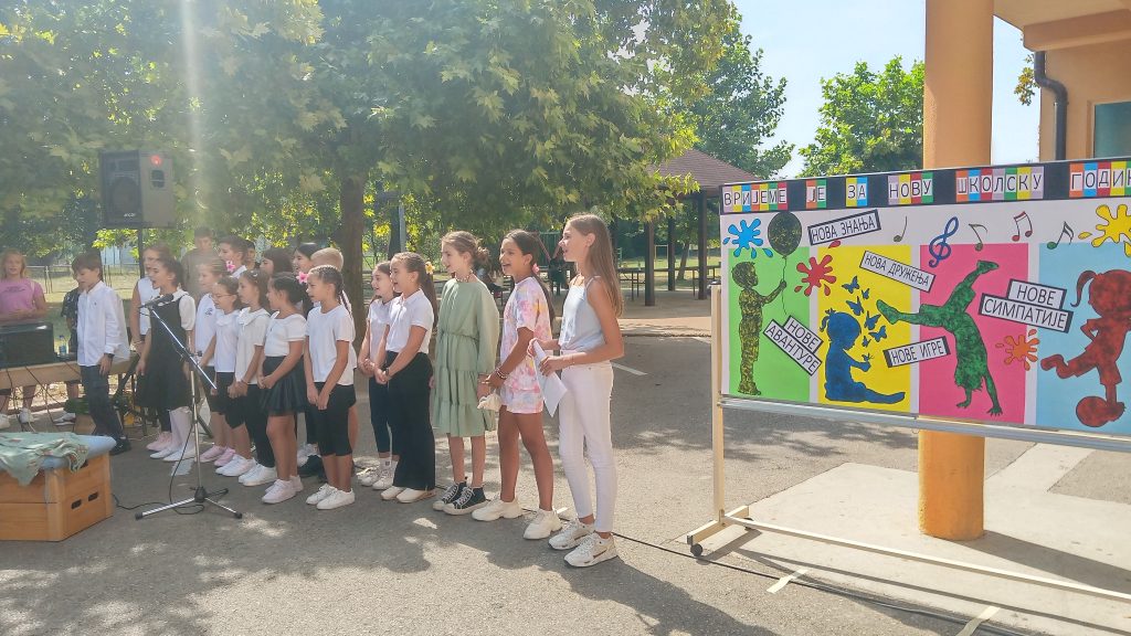 У нашој школи, 1. септембра, свечано је обиљежен почетак нове школске године. Посебно узбуђење владало је међу ђацима првог разреда који су први пут закорачили у свијет образовања. За њих је организована посебна приредба у којој су учествовали старији ученици наше школе.