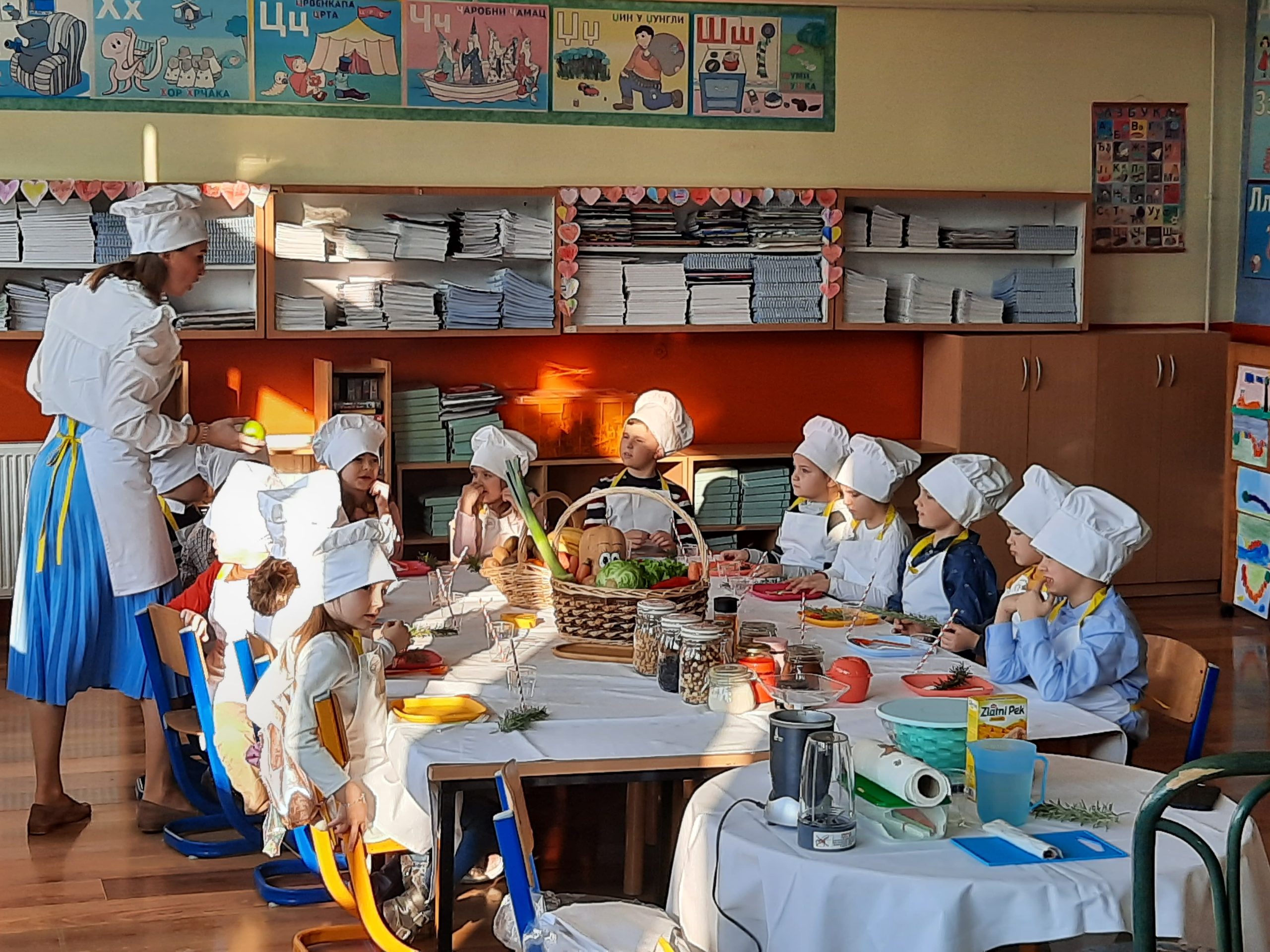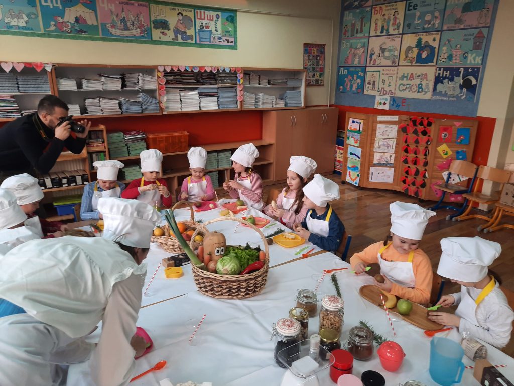 У петак, 4.марта 2022. године, ученици првог разреда су угостили представнике организације „ Пољопривредни кластер ГЛС “ и уживали учествујући у креативној радионици „ Здрави залогаји “. Наши првачићи су плијенили пажњу симпатичним размишљањима и одговорима на тему здраве хране, њеном значају, а саставни дио активности били су и рецепти малих кувара.